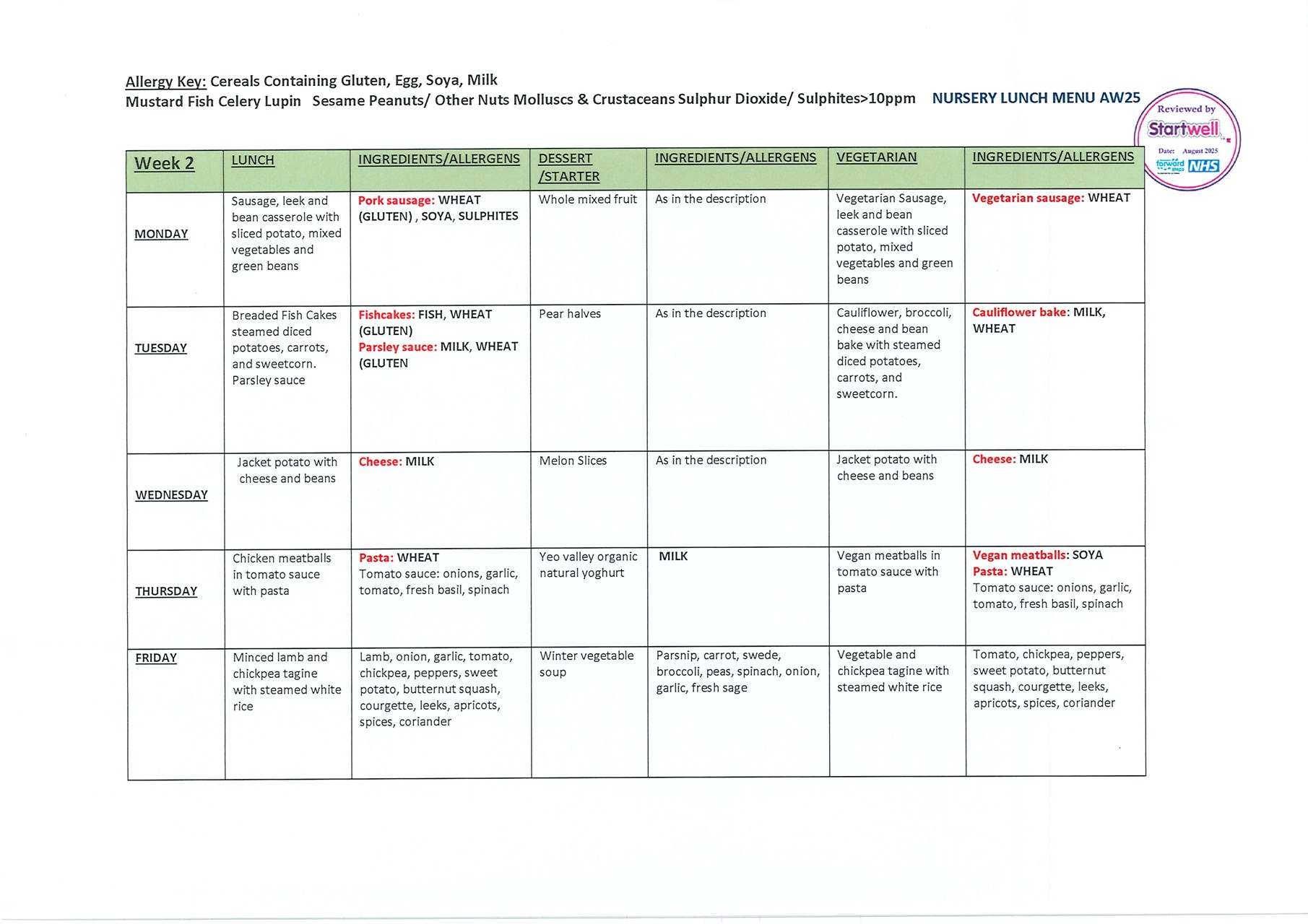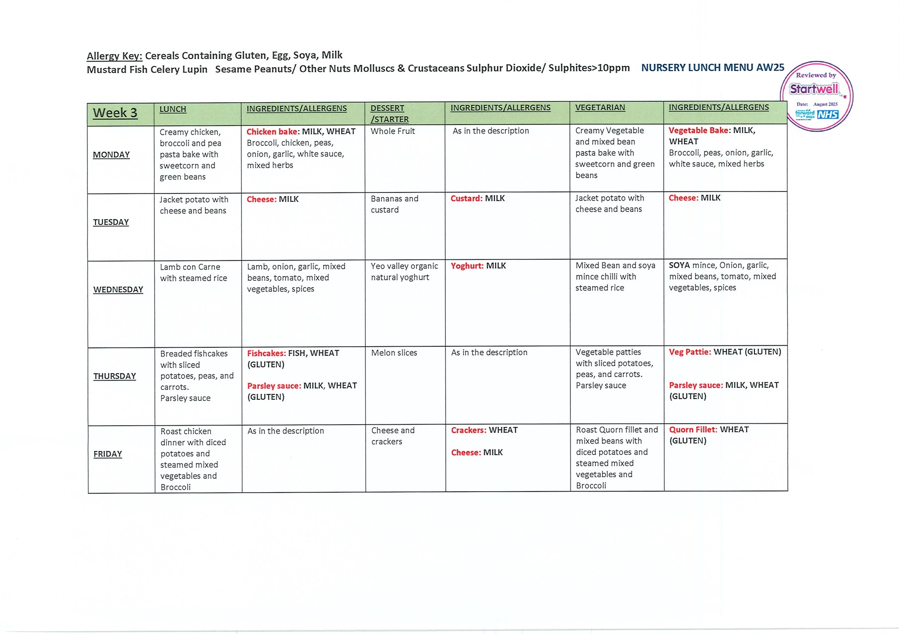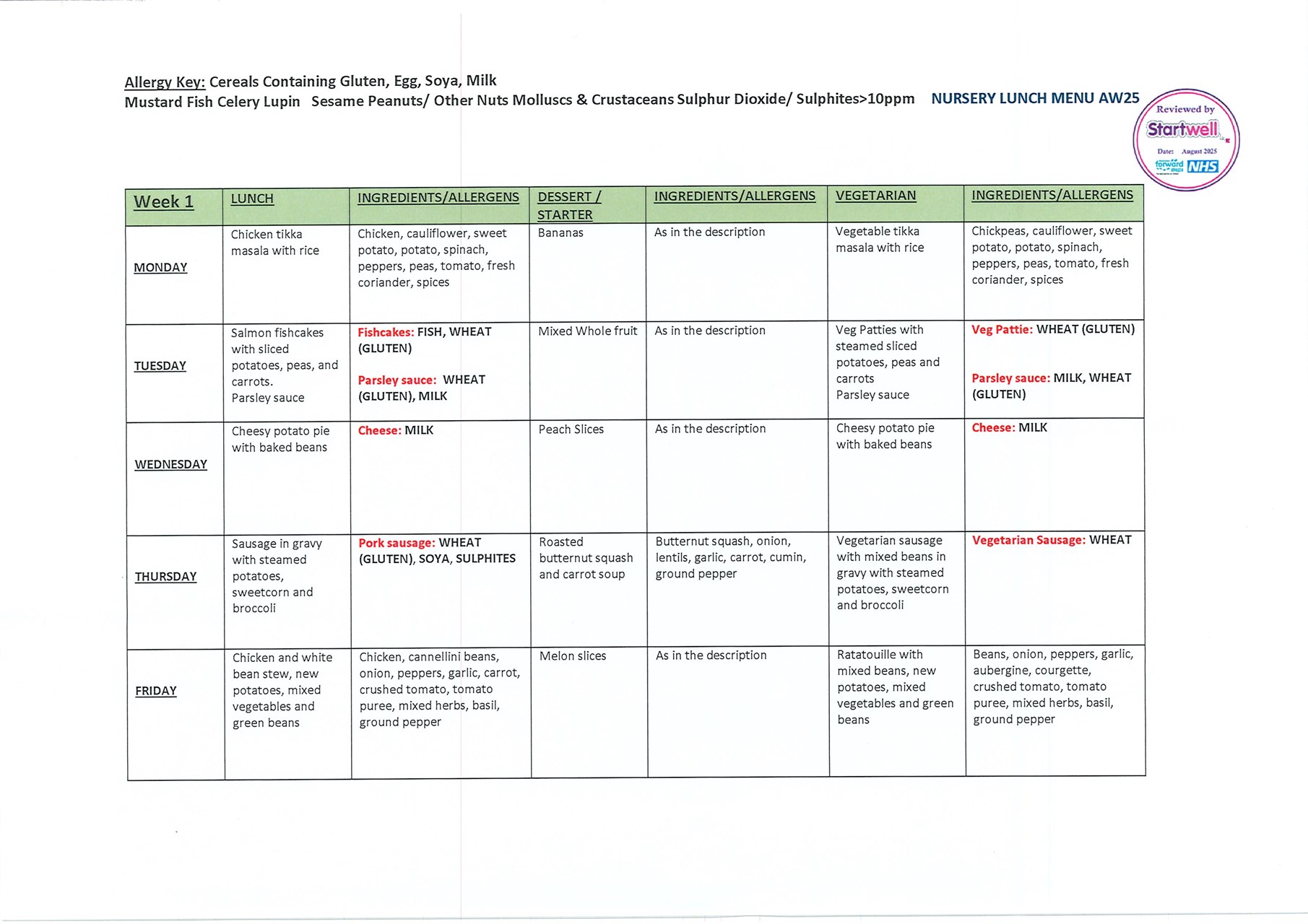 Food at Nursery