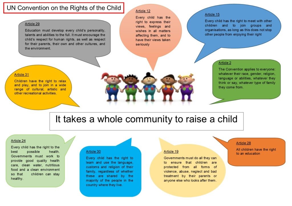 Our school mission statement ‘It takes a whole community to raise a child’ is closely linked to lots of these ‘Rights’, some of which are shown below: