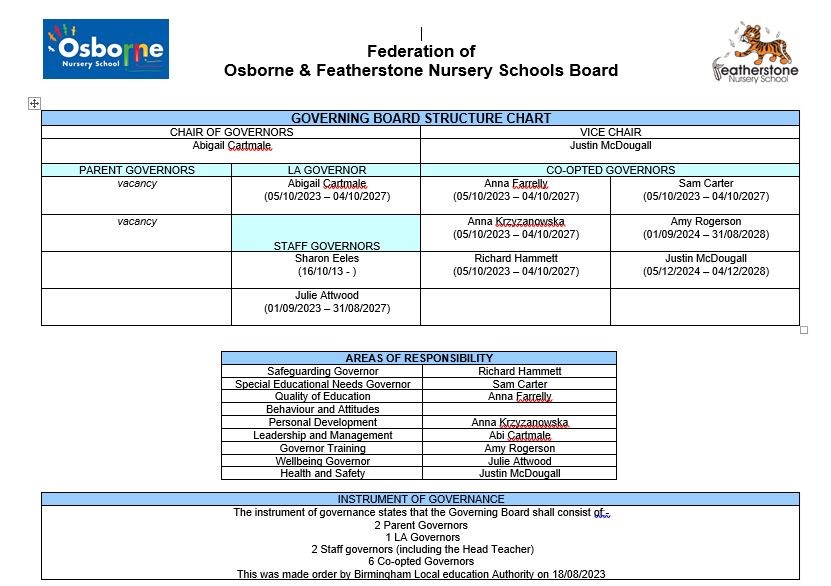 Federation of Osborne and Featherstone Nursery Schools Governing Board